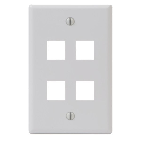 FACEPLATE, FLAT, 1-GANG, 4-P, WH | FITS SINGLE GANG OUTLET, ACCEPTS IC107 HD & EZ