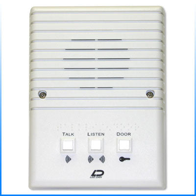 IR-103E (IR103E) is an economical 3-wire apartment intercom station for new construction, where new wiring is used. Minimal depth makes for a particularly easy and attractive installation. The large 2 1/2", .3 Watt, 45 Ohm speaker provides superior voice quality audio reproduction. Contemporary styling, featuring stark white color and pleasing lines, compliments most decors. Advanced circuitry and simple pushbutton operation make this the perfect station for use in large or small buildings. New Braille legends, in addition to English language and symbol legends make this station easy to operate by all.