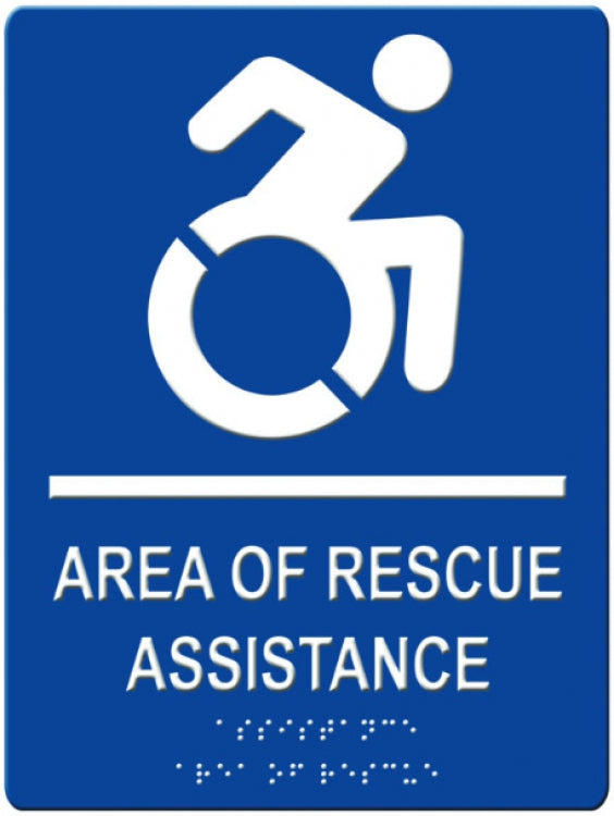 AREA OF RESC WALL SIGN-BLUE-NY WITH NYS HANDICAPPED SYMBOL