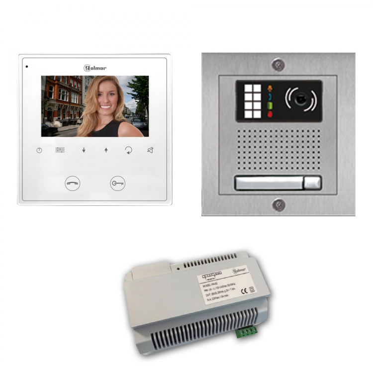 1-UNIT VIDEOINTERCOM KIT-SS-SU INCL. 1- VESTA2 GB2 MONITOR, 1 BUTTON SURFACE ST. ST. DOOR CAMERA STATION & POWER EQUIPT.