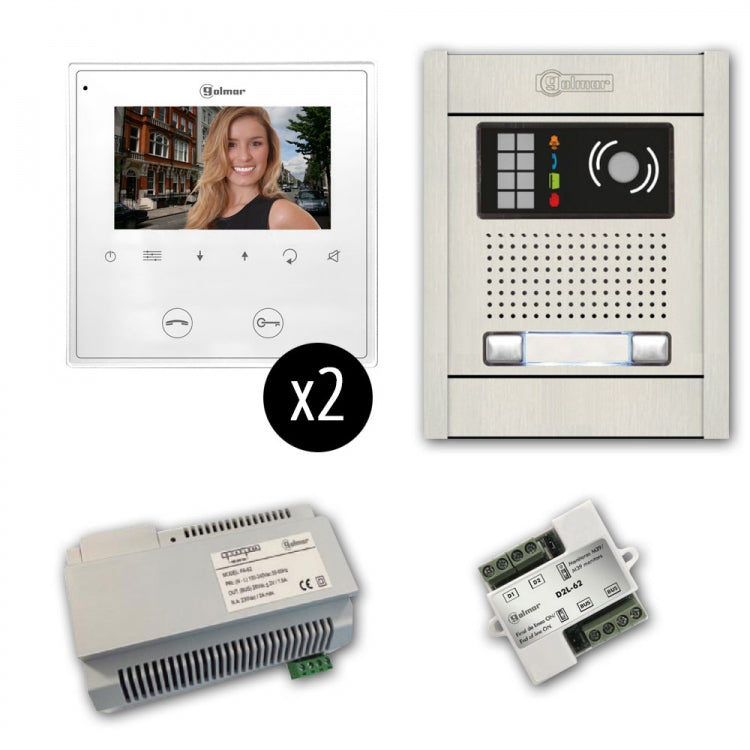 2-UNIT VIDEOINTERCOM KIT-AL-SU INCL. 2- VESTA2 GB2 MONITORS, 2 BUTTON SURFACE ALUM. DOOR CAMERA STATION & POWER EQUIPT.