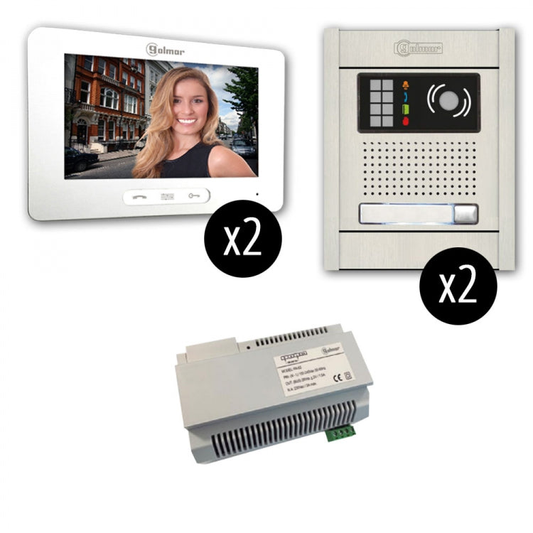 1-BTN GB2 KIT,AL,FL,2 DR,2 MON INCL. (2) THERA GB2 MONITORS, (2) 1-BUTTON FLUSH ALUM. DOOR CAMERA STATIONS & POWER EQUIP.