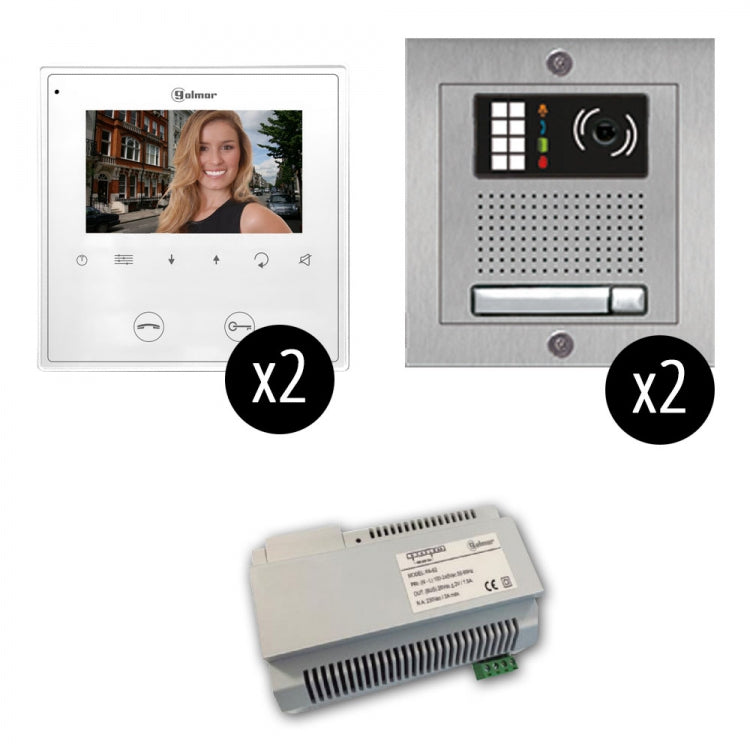 1-BTN GB2 KIT,SS,SU,2 DR,2 MON INCL. (2) THERA GB2 MONITORS, (2) 1-BUTTON SURF. ST.ST. DOOR CAMERA STATIONS & POWER EQUIP.